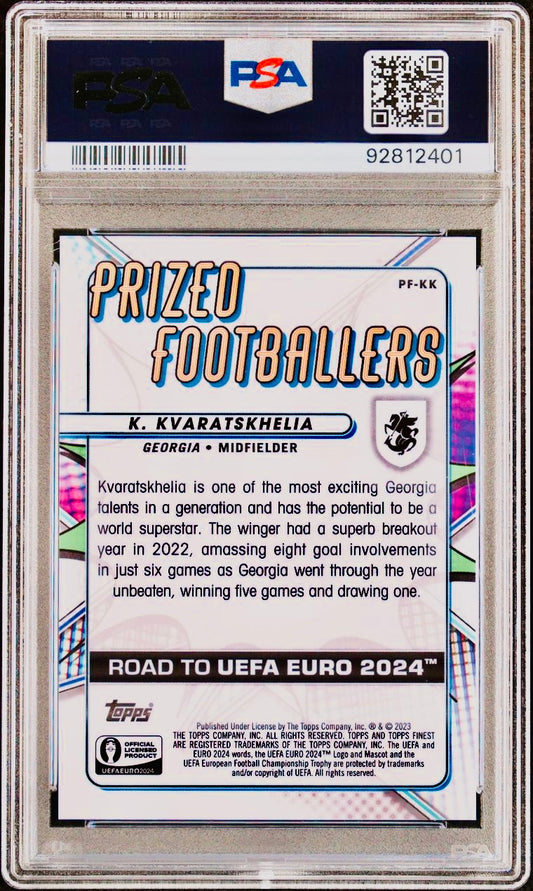 PSA GRADED SLAB - GEM MINT 10 - KHVICHA KVARATSKHELIA - 2023 TOPPS FINEST RD TO UEFA EURO ‘24